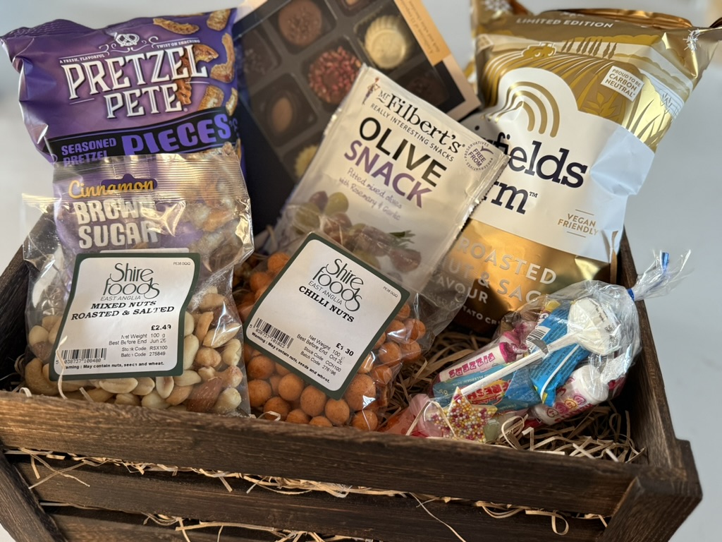 Vegetarian options or dietary swaps can be arranged — just let us know when ordering and we’ll tailor your hamper for you.
